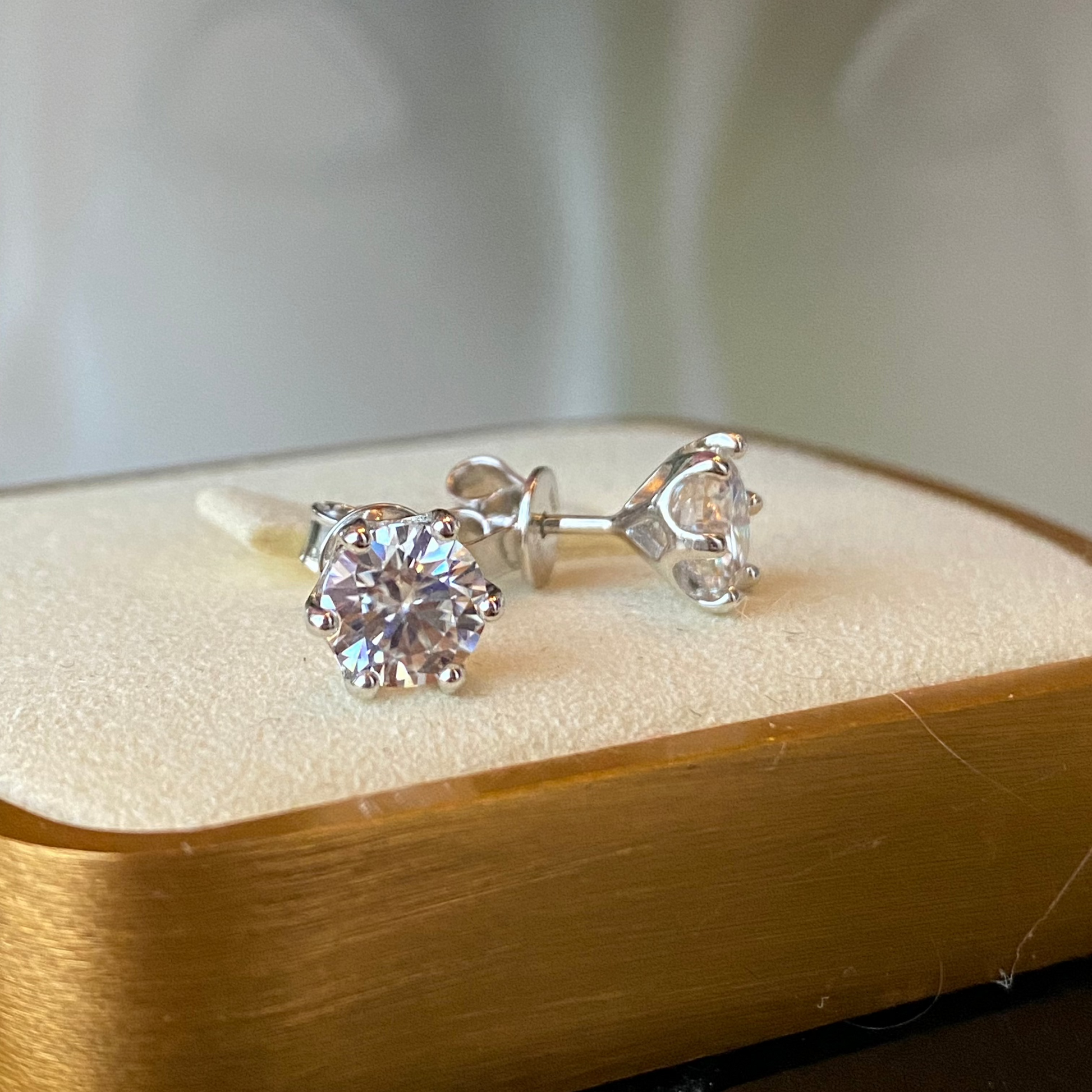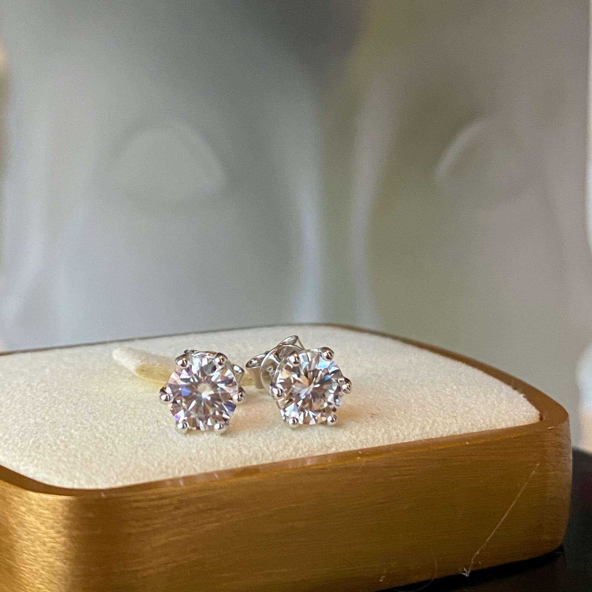 Arete con solitario de moissanita en montaje de plata