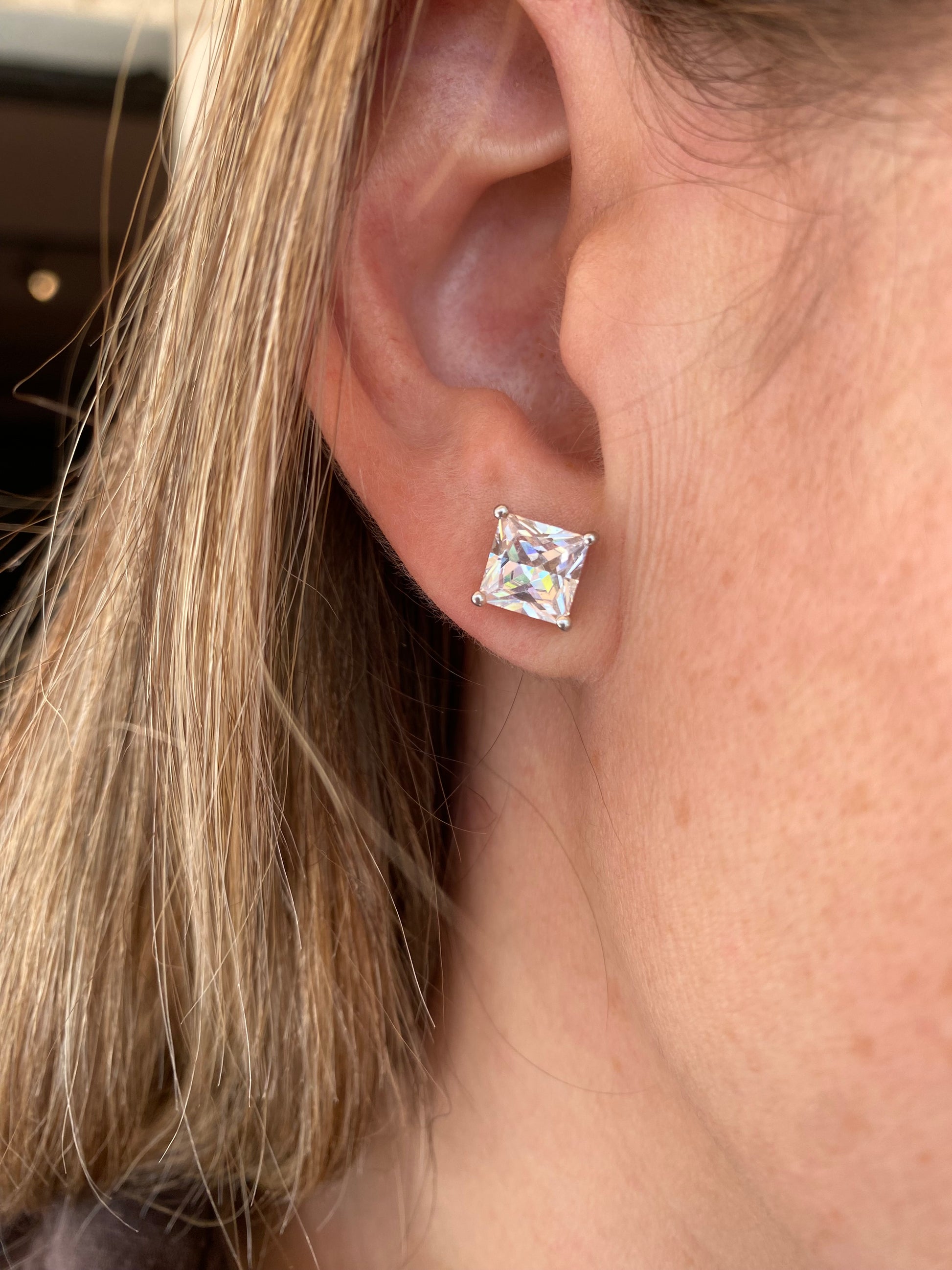 Aretes de plata S925 con moissanita corte princesa de 7*7mm